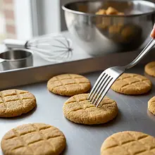 The characteristic grid pattern on peanut butter cookies was popularized in the 1930s by Pillsbury in one of its cookbooks. It was suggested to press the dough balls with a fork, which not only added charm but primarily helped the thick, gluten-free dough bake evenly.