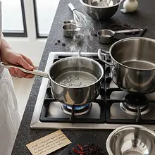 Prepare a water bath. Pour water into a small pot to a height of about 2-3 cm and bring to a boil. Reduce the heat to the minimum. Place a heatproof or metal bowl on top of the pot, ensuring that its bottom does not touch the water. Add 175g of chopped dark chocolate and diced butter to the bowl. Slowly stir with a silicone spatula until the ingredients are completely melted and combined into a smooth, shiny mixture. Remove the bowl from the pot and set aside to cool slightly.