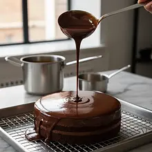 Set the glaze aside to cool. The ideal temperature for glazing is 32-35°C. You can cover the surface of the glaze with plastic wrap (so that it touches the surface of the liquid), which will prevent a skin from forming. Regularly check the temperature with a candy thermometer. The glaze should thicken to the consistency of thin honey.