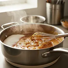Use a heavy-bottomed saucepan to prevent the sugar from burning. A light-colored bottom allows you to control the color of the caramel. Do not stir the sugar with a spoon until it is mostly dissolved, as it may crystallize!