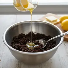 Pour the crushed biscuits into a bowl. Add the melted butter and mix thoroughly with a spoon until all the crumbs are moist. The mixture should resemble wet sand. Transfer the mixture to the prepared springform pan and spread it evenly. Then, using the bottom of a glass or a spoon, press the mixture firmly into the bottom of the pan to create an even and compact base. Place the pan in the refrigerator for at least 30 minutes to allow the base to set.