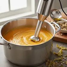 Remove the pot from the heat. Using an immersion blender, blend the soup directly in the pot until it is perfectly smooth and velvety. Move the blender up and down to incorporate all the vegetable pieces under the blades. Blend for about 2-3 minutes. If you don't have an immersion blender, pour the soup in batches into a countertop blender and blend.