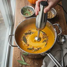 Remove the pot from the heat. Using an immersion blender, blend the soup directly in the pot until it is perfectly smooth and velvety. Move the blender up and down and in a circular motion to ensure there are no lumps. Blending should take about 2-3 minutes.