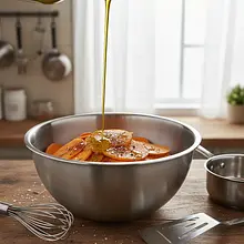 Preheat the oven to 200°C (fan) or 220°C (top-bottom). Wash the sweet potatoes thoroughly under running water, scrubbing the skin with a brush. Dry them with a paper towel. Do not peel them – the skin will be delicious and full of fiber after baking. Cut the sweet potatoes into even cubes, about 2 cm on each side. Even pieces will ensure uniform baking.