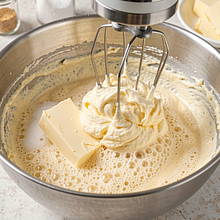 Beat the butter with sugar: place the soft butter in a large bowl, add 140 g of sugar (the rest went to the rhubarb) and optionally vanilla sugar. Beat with a mixer on medium speed for 3–4 minutes until the mixture becomes light and fluffy. The mixture should change to a lighter color and become slightly aerated — it will feel noticeably lighter when touched with a spoon.
