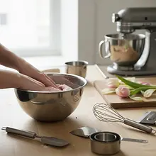 This unique yeast cake is a true decoration for the Easter table. Inspired by the shape of a blooming tulip, it combines two flavors and colors of the dough: classic, buttery with a refreshing hint of lemon zest and intensely raspberry, colored with natural, freeze-dried powder. Its texture is incredibly fluffy, moist, and delicate, with the characteristic layers of yeast dough. When sliced, it reveals a spectacular, marbled pattern reminiscent of rolled flower petals. Topped with a thick, lemon glaze, it perfectly balances the sweetness of the cake with its tartness. Served at a festive breakfast or as a dessert, it not only delights with its flavor but also serves as a beautiful, edible decoration. This is a variation on the traditional Polish Easter cake, drawing inspiration from nature and the awakening of spring.
