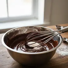 In a large, heatproof bowl, place 150g of diced butter and broken pieces of dark chocolate. Melt the ingredients in a water bath: set the bowl over a pot of gently simmering water, ensuring the bottom of the bowl does not touch the water. Stir with a silicone spatula until you achieve a smooth, glossy mixture. Remove the bowl from the pot and let it cool for 5 minutes. Meanwhile, in a second bowl, peel the bananas and mash them thoroughly with a fork into a smooth paste (small lumps may remain).