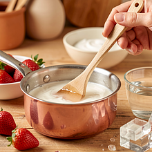 Delicate and creamy whipped cream served with seasonal strawberries — a simple, light, and impressive dessert perfect for May gatherings in the garden. The cream is stabilized with a small amount of gelatin, allowing it to maintain its fluffy texture even on a warm day and during transport to a picnic. The strawberries are briefly macerated with sugar and lemon, which enhances their aroma and gives the dessert a refreshing quality. You can serve the dessert in cups, jars, or as a layer on a plate; optionally, you can also prepare a quick rhubarb compote for a contrasting flavor. Visually, it is a red and white dessert — white, shiny cream and juicy red strawberries, garnished with a green mint leaf. Flavor: creamy, slightly sweet with a distinct fruity acidity.