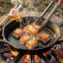 A traditional, rustic recipe for pork belly fried in olive oil with garlic over an open fire — a variation inspired by Polish regional cuisine. The dish combines the fatty-salty flavor of the bacon with the aroma of roasted garlic, lemon, and thyme; prepared in a cast iron dish or on a grill, it gives a crispy skin and tender interior. Perfect for a May Day celebration, a gathering by the fire, or as the main element of a feast: serve with young potatoes, sour cream, or buckwheat, green onions, and sorrel for a fresh contrast to the fat. The recipe includes detailed instructions for preparation, marinating, fire-starting techniques, and readiness signals, so even beginners can prepare perfect bacon.