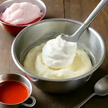 Add lemon: squeeze the juice from half a lemon (about 1/2 lemon) and gently fold it into the mixture for freshness — be careful not to add too much juice so as not to thin out the cream. Taste the mixture — it should be slightly sweet with a distinct but subtle tartness.