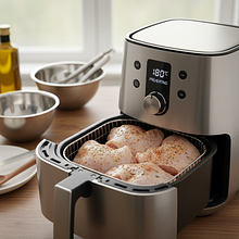Here’s a recipe that pits two of the most popular kitchen appliances against each other: the modern AirFryer and the traditional oven. We will prepare juicy chicken thighs on the inside and incredibly crispy on the outside, wrapped in a fragrant marinade of garlic, rosemary, and thyme. They will be accompanied by golden roasted potatoes and sweet root vegetables that caramelize during baking, releasing their full flavor. This dish is the essence of home comfort, perfect for a family dinner or a quick yet impressive dinner. The recipe is designed so you can decide which method to use and see which one better suits your needs. The AirFryer will provide unmatched crispiness and speed, while the oven allows for preparing a larger portion at once, in a more classic style. Serve with a dollop of yogurt or a light salad.