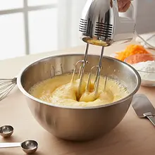 Nie przerywając ubijania, powoli, cienką strużką wlewaj olej roślinny do puszystej masy jajecznej. Zmniejsz obroty miksera do średnich. Ważne jest, aby dodawać olej stopniowo, pozwalając mu na dokładne wchłonięcie przez masę. Dzięki temu powstanie stabilna emulsja, a ciasto będzie miało idealną, wilgotną strukturę.