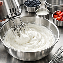 In a bowl, whip the chilled heavy cream to soft peaks (about 2-3 minutes with a mixer). In a separate bowl, blend the cottage cheese with powdered sugar and lemon juice until smooth (1-2 minutes). Gently fold the whipped cream into the cottage cheese using a spatula — scoop and fold the mixture until it is uniform and fluffy.