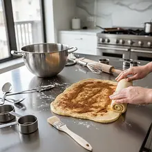 Start by preparing the yeast starter. In a small saucepan, heat 250 ml of milk. It should be slightly warm, like bath water for a baby (about 37°C). Check the temperature by dropping a little on the inside of your wrist - it should not feel hot. In a large bowl or mixing bowl, crumble 25 g of fresh yeast. Add one tablespoon of sugar (from the 80 g), pour in the warm milk, and mix with a fork until the yeast is completely dissolved. Set the bowl in a warm, draft-free place for 10-15 minutes. After this time, a thick, beige foam should appear on the surface. This is a sign that the yeast is active and ready to work.