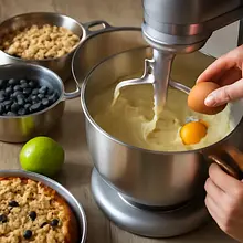 Add the dry ingredients to the butter mixture in two batches, alternating with the buttermilk: first 1/3 of the dry ingredients, mix on low speed just until combined (10-15 seconds), then half of the buttermilk (about 100 g), then the dry part again, and finally the rest of the buttermilk and the last dry part. Mix briefly — the batter is ready when there are no visible streaks of flour, but do not over-aerate it with the mixer.
