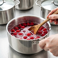 In a small bowl, dissolve the cornstarch in 2–3 tablespoons of cold water (a smooth slurry should form). When the raspberries are boiling and the juice becomes liquid, pour in the lemon juice (about 20 g) and slowly add the cornstarch slurry while stirring vigorously.