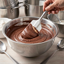 In a large bowl, mix the dry ingredients: sift the flour, cocoa powder, and baking powder directly into the bowl. Add salt and mix thoroughly with a wooden spoon or whisk to combine the ingredients evenly.