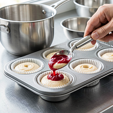 Place the mold in the preheated oven and bake at 180°C for 16–20 minutes. After 16 minutes, check with a toothpick: if the toothpick comes out dry with a few moist crumbs, the cupcakes are ready. Do not bake too long — they will be dry.
