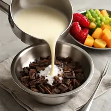 Serve the fondue directly in the center of the table so everyone can access it. Prepare various shapes and sizes of fruits (slices, cubes, whole strawberries) for easy dipping. You can also serve crushed cookies, ladyfingers, or pieces of cake for dipping.