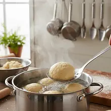 Dumplings are such an integral part of Czech culinary identity that there is a saying 'Život bez knedlíků je jako nebe bez hvězd' (Life without dumplings is like the sky without stars). Houskový knedlík, made with stale bread, is the most popular variant, perfect for thick sauces.