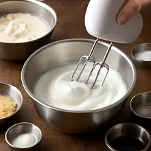 Beat the egg whites with salt: pour the egg whites into a clean, dry bowl and add a pinch of salt. Beat with a mixer on medium-high speed for 4–6 minutes until stiff, glossy, stable peaks form (they will hold when the bowl is turned upside down).