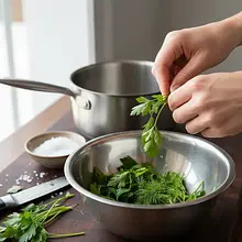 In a large, dry bowl, place the coarse sea salt. Add all the chopped herbs, garlic paste, and grated lemon zest. Now for the most important part – using your hands, start rubbing all the ingredients into the salt. Do this for 3-4 minutes, crushing the salt crystals with the herbs between your fingers. The salt will begin to absorb moisture and essential oils, changing color to a vibrant green and taking on a moist consistency resembling wet sand.