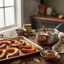 Homemade Spiced Pumpkin Latte is the essence of autumn captured in a cup. This aromatic, warming coffee drink is a much healthier and tastier alternative to popular café versions. At its heart is velvety, homemade roasted pumpkin purée, which gives the drink natural sweetness, beautiful color, and creamy consistency. It is complemented by an intense, spiced syrup with notes of cinnamon, cloves, ginger, and nutmeg, which envelops the senses in warmth. The distinct flavor of freshly brewed espresso perfectly balances the sweetness and milky base. Topped with a cloud of fluffy whipped cream and a sprinkle of cinnamon, it becomes not just a drink, but a true dessert. Perfect for chilly evenings, gatherings with friends, or as a reward after a long day. Its preparation is a true ritual that will fill the home with the most beautiful scent of autumn.