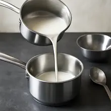 Prepare the starter: heat the milk to a temperature of about 35-38°C (it should be warm but not hot — check on your wrist). Crumble the fresh yeast into a small bowl, add 1 tablespoon (about 12 g) of the sugar from the list and pour in 50 ml of warm milk. Mix with a fork until the yeast dissolves and set aside in a warm place for 8-10 minutes. After this time, a foam should appear on the surface and you should smell the yeast, which indicates activation.