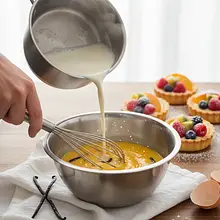 Teraz następuje kluczowy proces hartowania jajek. Z gorącego mleka wyjmij laskę wanilii. Bardzo powoli, cienką strużką, wlewaj około 1/3 gorącego mleka do masy jajecznej, cały czas energicznie mieszając rózgą. To stopniowo podniesie temperaturę jajek, zapobiegając ich ścięciu. Następnie zahartowaną masę jajeczną wlej z powrotem do rondelka z pozostałym mlekiem, wciąż mieszając.