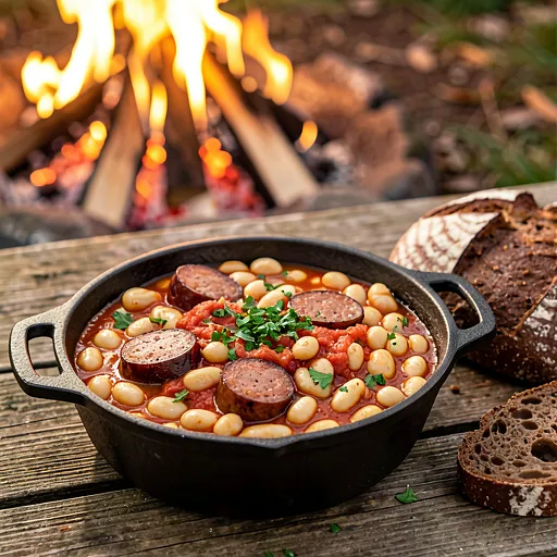 Build a fire in a well-ventilated area. Wait until a large amount of embers and evenly heated logs are formed (about 25-30 minutes after lighting). Prepare a cast iron pot or a covered baking dish (preferably cast iron/dutch oven), a grill or chain for hanging over the fire, as well as tongs and protective gloves.