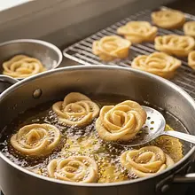 Heat the fat. In a wide, flat pot or deep pan, heat the oil or lard. There should be enough fat (about 3-4 cm deep) for the angel wings to float freely in it. Heat it to a temperature of about 175-180°C. If you don't have a thermometer, drop a small piece of dough in - if it immediately rises to the surface and starts to brown vigorously, surrounded by bubbles, the fat is ready.