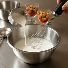 Before whipping the cream, chill a metal or glass bowl and the mixer attachments in the fridge for 15-20 minutes — cold tools will make whipping easier and help the cream reach the desired consistency faster.