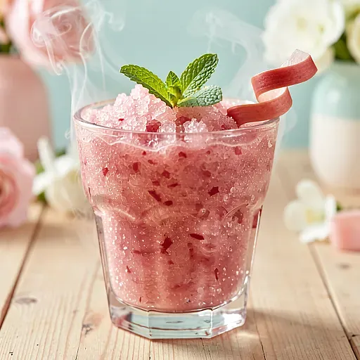 If you are preparing the granita in advance, store it in a sealed container in the freezer — before serving, crush it with a fork to restore its texture. Avoid long storage (over 3 days), as the aroma of fresh rhubarb diminishes.