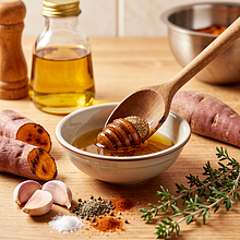 Sweet potatoes were known and cultivated in tropical regions, but in modern Polish cuisine, they gained popularity due to their sweetness and ability to be seasoned with local herbs. The combination of honey with smoked paprika refers to the preservation and smoking techniques used in the past in Poland.