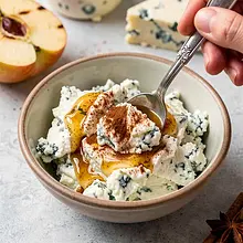 Delicately caramelized grilled apples stuffed with creamy blue cheese and drizzled with honey — a simple, spring vegetarian dessert. The dish combines the sweetness of juicy apples with the creamy, tangy notes of blue cheese and the aroma of cinnamon. Perfect for a light end to a meal, with coffee, or at a garden party. Serve warm, with crunchy nuts for a contrast of textures and optional lemon zest for freshness.