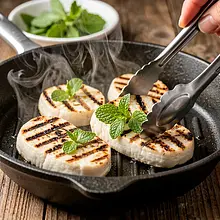 Halloumi comes from Cyprus and is traditionally made from a mixture of sheep's and goat's milk; its high melting point makes it perfect for grilling without melting.