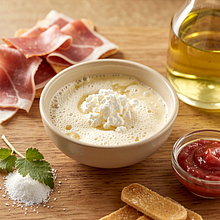 Heat 50 ml of water to a temperature of 35–37°C (it should feel warm to the touch, not hot). Crumble fresh yeast into a small bowl, add 5 g of sugar (from the total amount) and pour in the warmed water. Mix with a fork for about 20–30 seconds until the yeast dissolves in the water. Set aside for 8–10 minutes in a warm place — a light foam or 'cap' should appear on the surface, indicating active yeast.