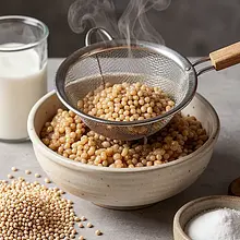 Rinse the pearl barley in a sieve under cold water to remove any dust. Pour 720 ml of water into a pot, bring to a boil, add 1 g of salt, stir in the pearl barley, and reduce the heat to medium-low. Cook uncovered for 25-30 minutes, stirring occasionally, until the barley is tender but slightly al dente. Drain any excess water if necessary, and let it sit covered for 5 minutes to fluff up.