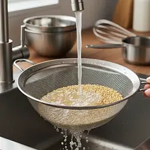 Pour 100g of dry millet into a fine sieve. Rinse it thoroughly under running water, first with cold water, and finally pour boiling water over it. Stir the millet vigorously with your hand while rinsing to remove the saponins that give it a bitter taste. Rinse until the water running from the sieve is completely clear.