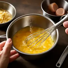 In a bowl, crack the eggs and whisk them thoroughly. Add a pinch of salt.