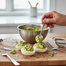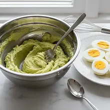 Place 6 eggs in a single row at the bottom of a medium pot. Cover them with cold water so that they are completely submerged (the water should be about 2 cm above the eggs). Put the pot on the stove over high heat. When the water starts to boil, reduce the heat to medium and cook the eggs for exactly 9 minutes. After this time, immediately remove the pot from the heat and cover the eggs with very cold water and ice. Leave them in the cold water for 10 minutes to cool completely.