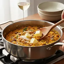Legenda głosi, że risotto narodziło się w XVI wieku w Mediolanie przez przypadek. Młody artysta, który używał szafranu do barwienia witraży w katedrze Duomo, miał dodać szczyptę cennego pyłku do ryżu na weselu swojej córki, tworząc słynne 'Risotto alla Milanese'.