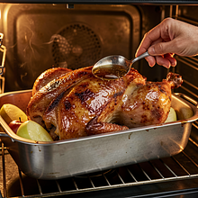 Unpack the duck, rinse the inside under cold water, and dry it thoroughly with a paper towel both inside and out. If there are any feathers on the skin, singe them over the gas flame or remove them with tweezers. Prick the skin in several places with a sharp knife (not deep into the meat, just through the fat under the skin) so that the fat can render out during roasting.