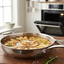 Prepare the caramel. In a heatproof skillet (one that can be placed in the oven, e.g., cast iron or steel with a diameter of about 24-26 cm), evenly sprinkle the brown sugar. Place the skillet over medium heat and patiently wait for the sugar to start melting. Do not stir it at first; you can only gently shake the skillet. When most of the sugar has dissolved and has taken on an amber color, add 60g of diced butter and 2 sprigs of rosemary. Stir vigorously until the butter melts and combines with the caramel, creating a smooth sauce. Be careful, the caramel is very hot!