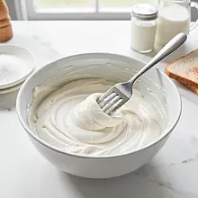 In a large bowl, transfer 400 g of semi-fat cottage cheese. Add 80 g of 18% cream and 10 g of powdered sugar (the rest of the sugar has been divided between the rhubarb and the cottage cheese). Mash the cottage cheese with a fork or use a hand mixer on low speed for 30-45 seconds until the mixture becomes smooth and creamy. Taste and, if necessary, add the remaining powdered sugar to taste (up to a total of 30 g).