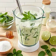 Pour the kefir (1000 ml) into the blender jug. Add the prepared sorrel (leave about 10 g of leaves for decoration), chopped mint (15 g), lime juice (from one half, about 30 g), and a pinch of salt (1 g). If you want a sweeter drink, add honey (30 g). Close the lid and blend on high speed for 30–45 seconds until the mixture is smooth, light green, and slightly frothy.