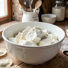 Use a bowl with a capacity of at least 2 liters. If you have an immersion blender, you can briefly blend the cottage cheese (2-3 pulses), but do not blend it into a paste — it should remain slightly grainy for texture.