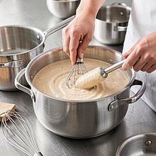 Pour the cooled rhubarb compote into a wide bowl and set aside to cool completely (about 10–15 minutes). If you want a smooth consistency, strain the compote through a fine sieve, pressing the pulp with a spoon - keep some of the pulp for texture.