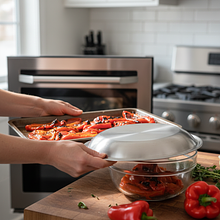 Remove the pepper from the oven and immediately transfer it to a glass bowl, covering it tightly with a plate or plastic wrap. Leave it for 10-15 minutes. The steam that collects inside will make the skin come off the flesh very easily. After this time, remove the skin with your fingers, discard the seeds and stem. Do not rinse the pepper under water to avoid losing the precious, aromatic juice.