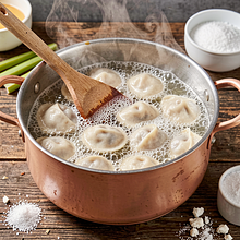 Peel the potatoes and cut them into even pieces (about 3-4 cm) so they cook evenly. Place them in a large pot, cover with cold water so that the water covers the potatoes by about 2 cm, and add 2 g of salt. Bring to a boil over high heat, then reduce the heat to medium-low and cook for 18-22 minutes, until the potatoes are soft - you can check this by inserting a knife: it should go in smoothly, without resistance.